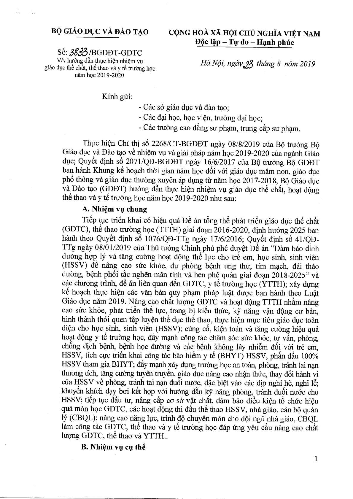 Công văn 1295/BGDĐT-GDCTHSSV