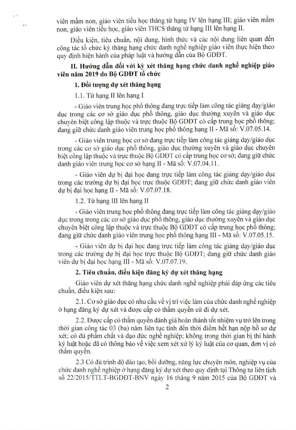 Năm 2019 Bộ giáo dục đào tạo tổ chức xét thăng hạng chức danh nghề nghiệp có chức danh chuyên viên chính bao gồm: giáo viên THPT, giáo viên THCS, giáo viên dự bị đại học.
