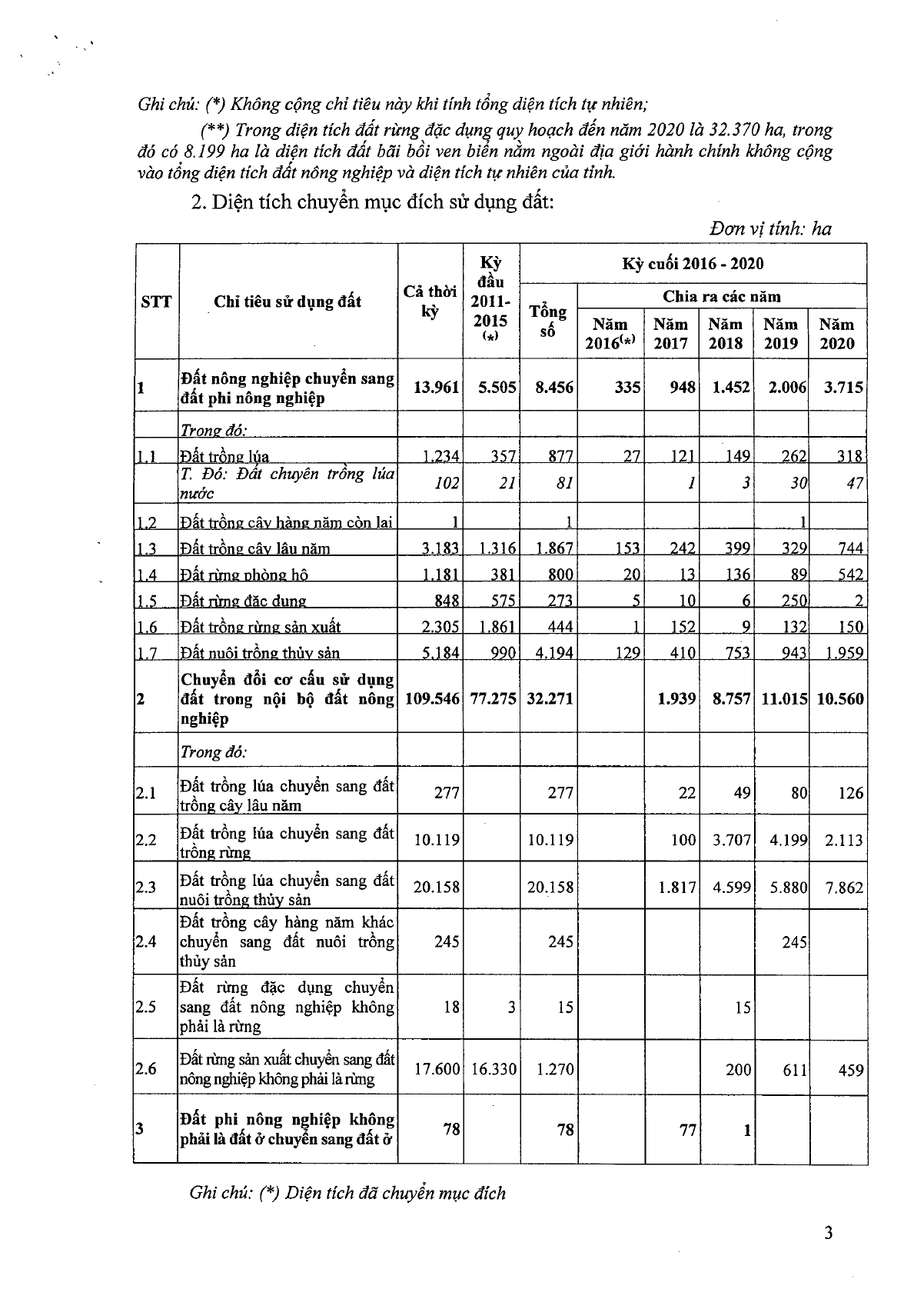 Theo đó, Chính phủ điều chỉnh quy hoạch sử dụng đất đến năm 2020 tỉnh Cà Mau với các nội dung: Giảm tổng diện tích đất nông nghiệp từ 463.977 ha tương đương 87,63% (năm 2010) xuống còn 458.683 ha tương đương 87,85% (năm 2020); Tăng diện tích đất phi nông nghiệp từ 56.533 ha tương đương 10,68% (năm 2010) lên thành 58.853 ha tương đương 11,27% (năm 2020); Tăng diện tích đất đô thị từ 29.666 ha tương đương 5,6% (năm 2010) lên thành 37.715 ha tương đương 7,22% vào năm 2020.