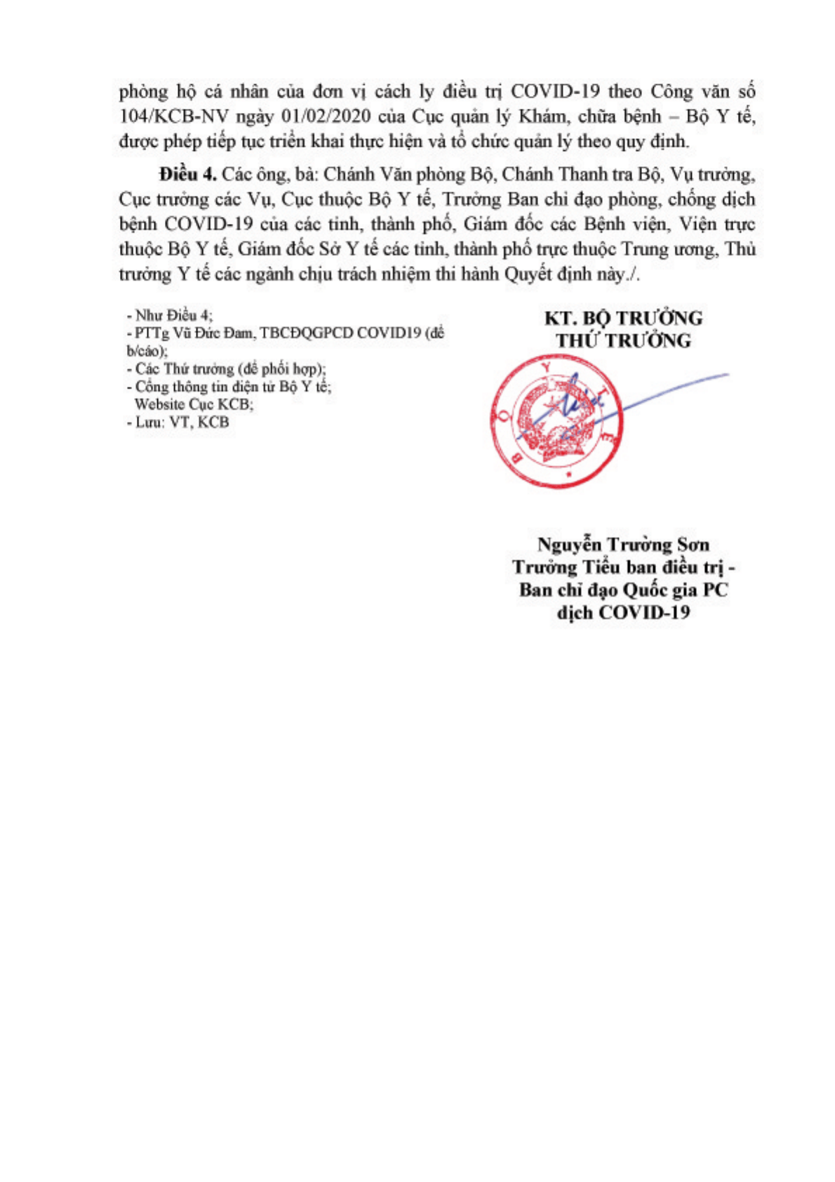 BỘ TRƯỞNG BỘ Y TẾ