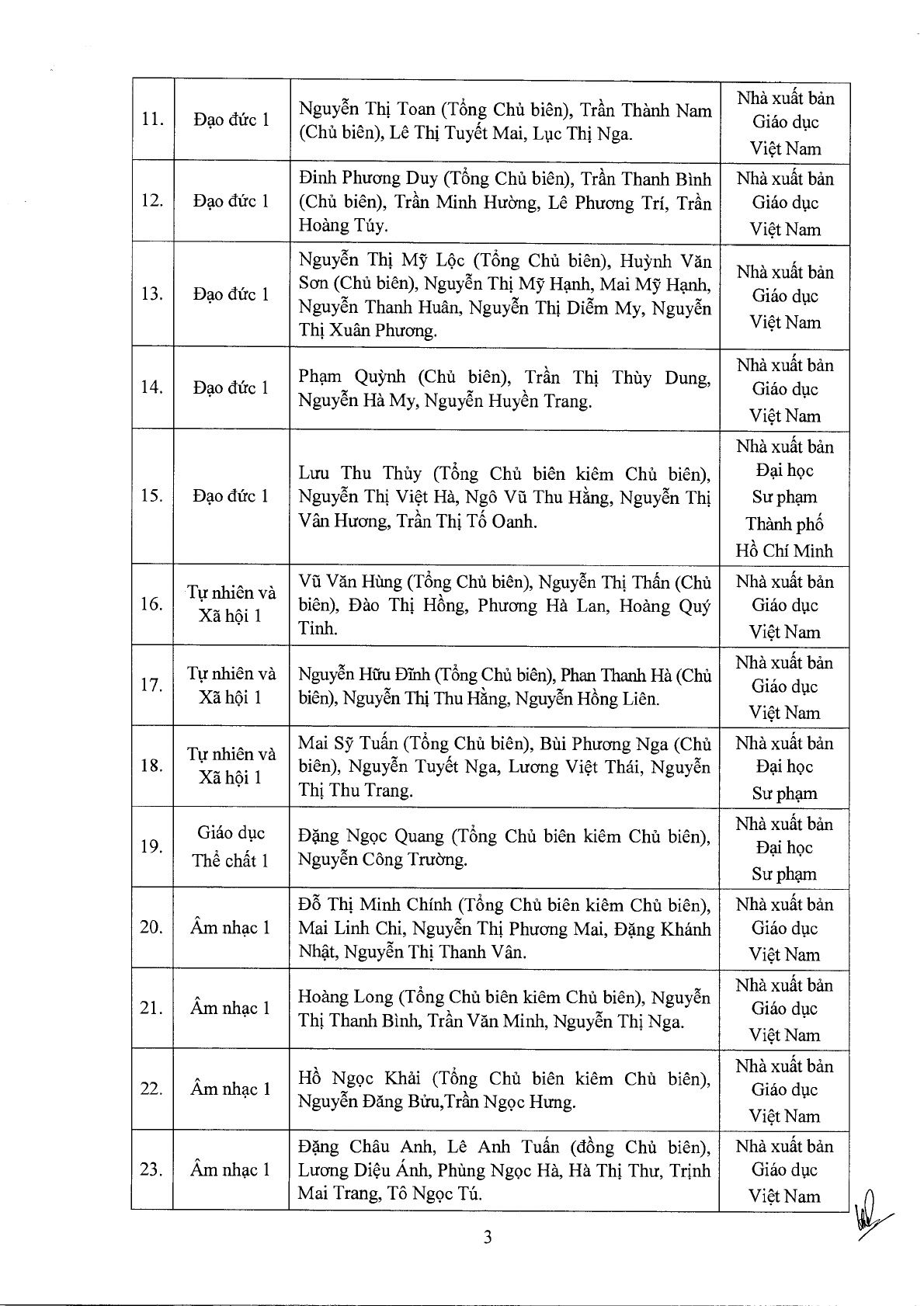 Với chủ trương xã hội hóa biên soạn sách giáo khoa; có một số sách giáo khoa cho mỗi môn học được quy định trong Nghị quyết 88 của Quốc hội, Bộ GDĐT đã tiếp nhận 49 bản mẫu sách giáo khoa của 9 môn học và hoạt động giáo dục ở lớp 1, từ 3 nhà xuất bản có chức năng xuất bản sách giáo khoa gửi về đề nghị thẩm định. Sau một thời gian thẩm định sách giáo khoa với quy trình nghiêm ngặt, cách thức triển khai khoa học, khách quan, công khai, minh bạc, cùng sự rà soát độc lập của Bộ, ngày 21/11/2019, Bộ trưởng Bộ GDĐT ký Quyết định số 4507/QĐ-BGDĐT Phê duyệt Danh mục sách giáo khoa lớp 1 sử dụng trong cơ sở giáo dục phổ thông. Theo đó, có 32 sách giáo khoa của 8 môn học và hoạt động giáo dục được phê duyệt trong lần này. Cụ thể, môn Tiếng Việt, Toán, Đạo đức, Mĩ thuật, Âm nhạc mỗi môn có 5 cuốn sách giáo khoa; môn Tự nhiên và xã hội có 3 cuốn; Giáo dục thể chất có 1 cuốn; Hoạt động trải nghiệm có 3 cuốn.