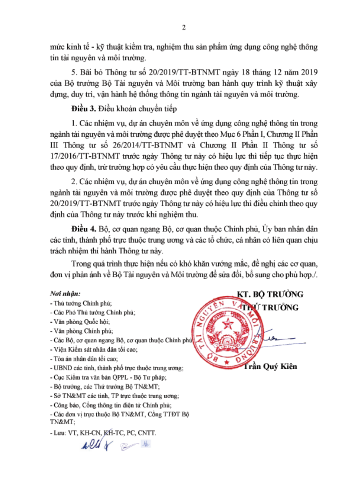 Làm hết hiệu lực Thông tư 20/2019/TT-BTNMT