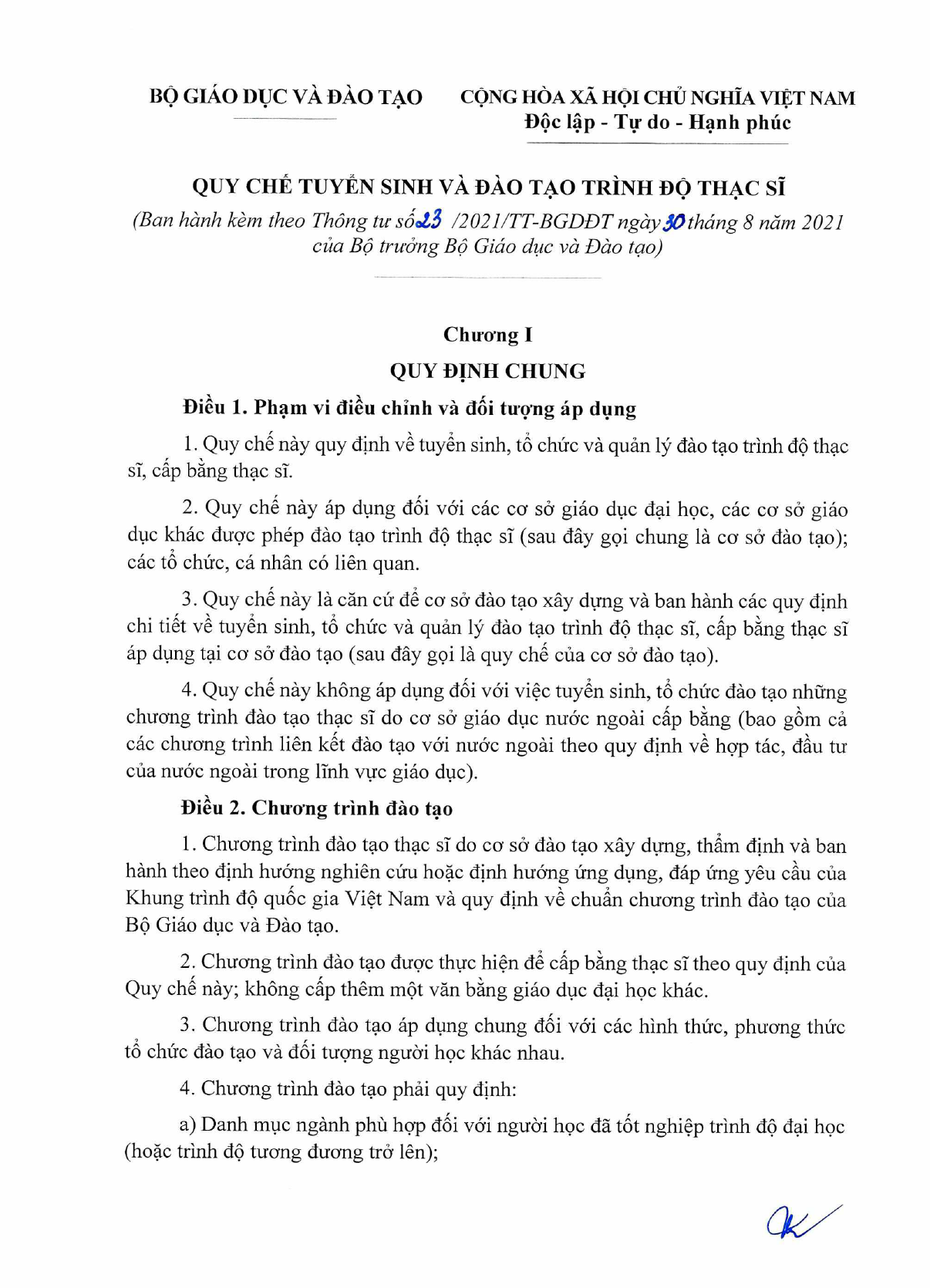 Thông tư 27/2021/TT-BGDĐT Quy chế thi đánh giá năng lực tiếng Việt cho người nước ngoài