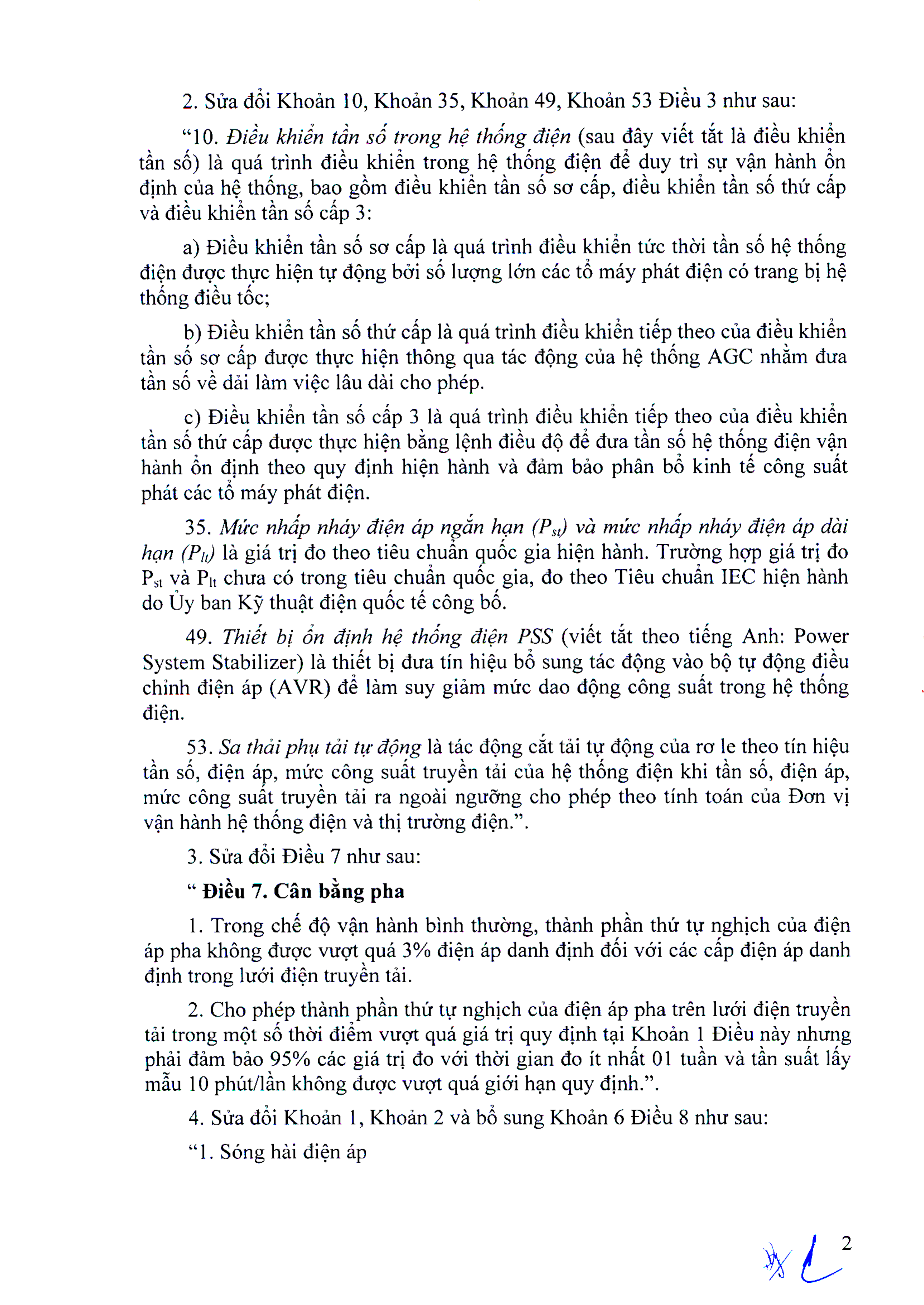 Khác với quy định cũ tại Thông tư 25/2016/TT-BCT: thành phần thứ tự nghịch của điện áp pha không được vượt quá 3% điện áp danh định, Thông tư này quy định: trong một số trường hợp con số này có thể vượt quá 3% nhưng phải đảm bảo 95% các giá trị đo với thời gian đo ít nhất 01 tuần và tần suất lấy mẫu 10 phút/lần không vươt quá giới hạn quy định.