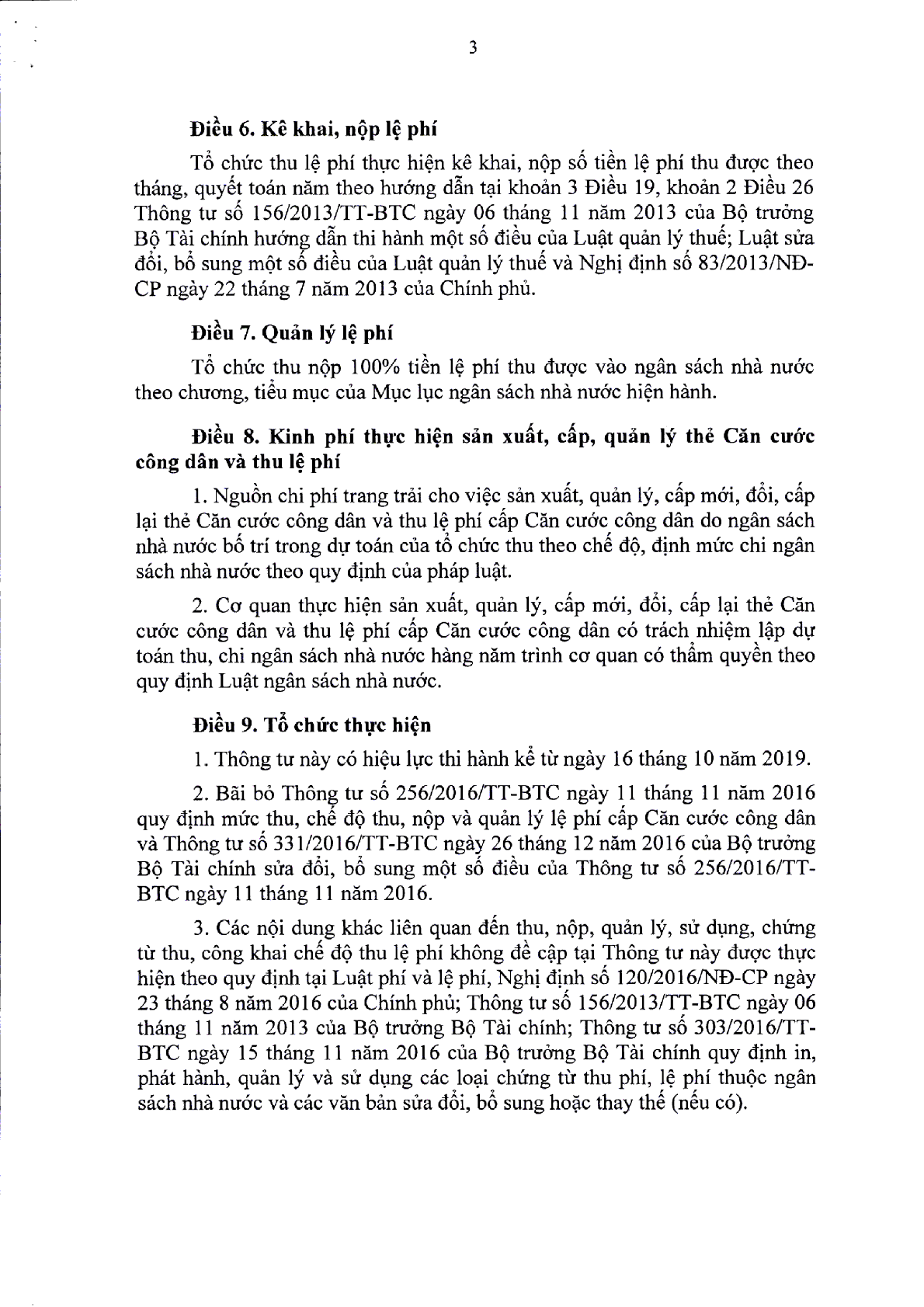 Thông tư 59/2019/TT-BTC - Mức thu lệ phí thẻ căn cước mới nhất