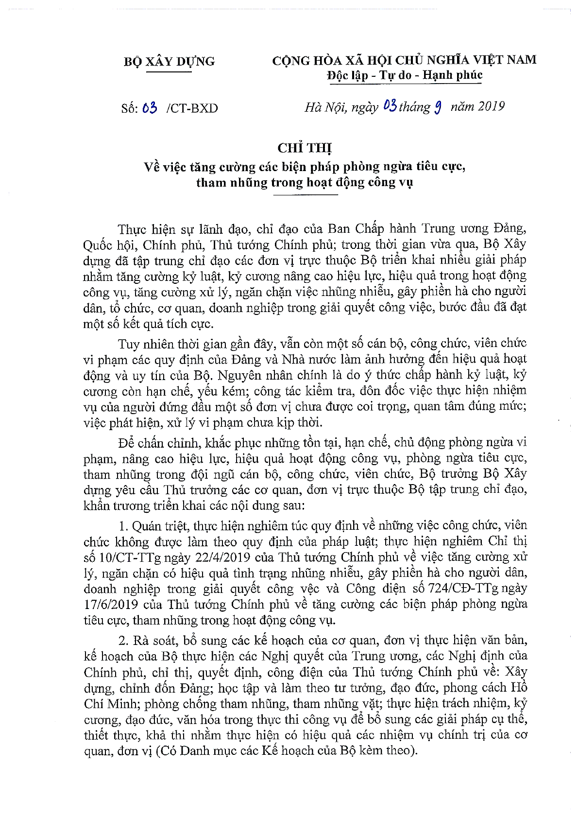 Chỉ thị 26/CT-TTg 2019