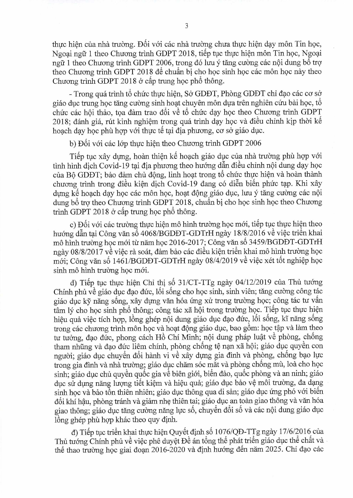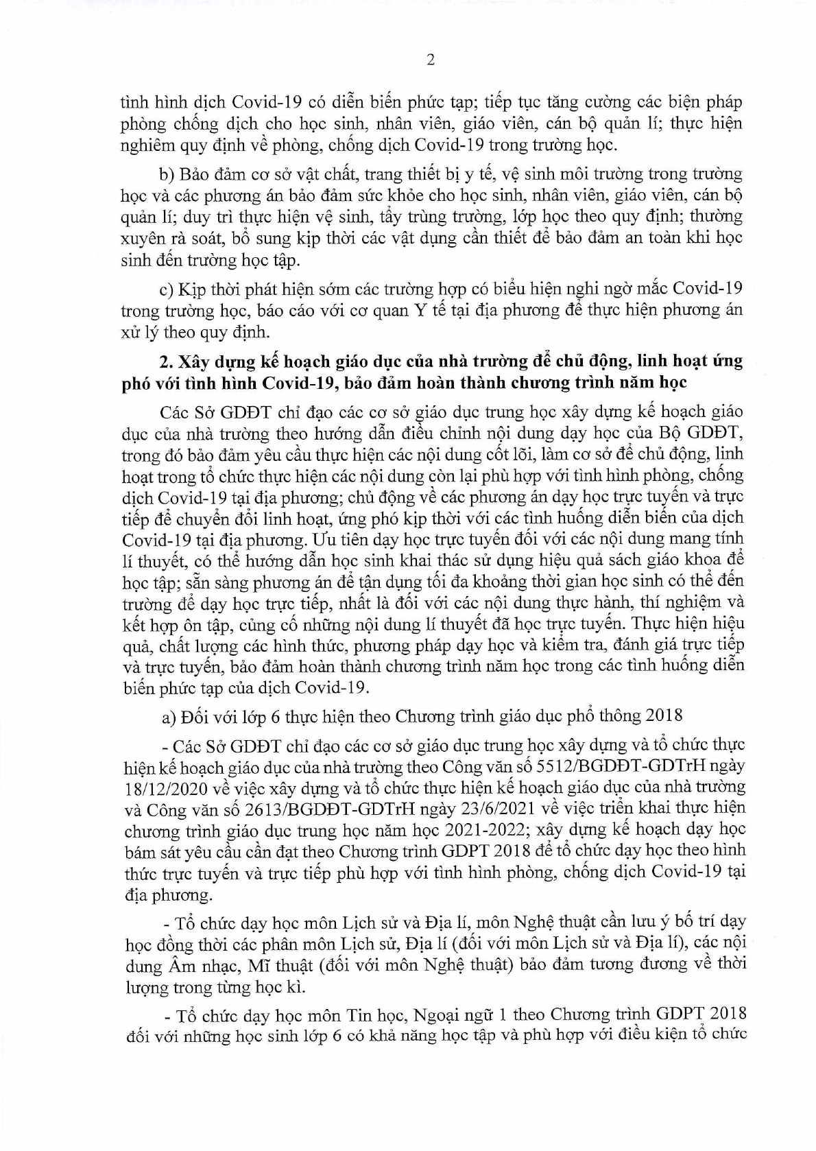 Theo đó, nhằm ứng phó với các diễn biến khó lường của dịch bệnh Covid19, Bộ giáo dục yêu cầu thực hiện triển khai chương trình giáo dục phổ thông mới đối với khối lớp 6 và tiếp tục thực hiện chương trình giáo dục phổ thông đối với lớp 7 đến lớp 12. Tăng cường phòng chống dịch Covid19 trong các trường học, xây dựng kế hoạch giáo dục nhà trường linh hoạt ứng phó với dịch Covid19, đảm bảo hoàn thành chương trình năm học....