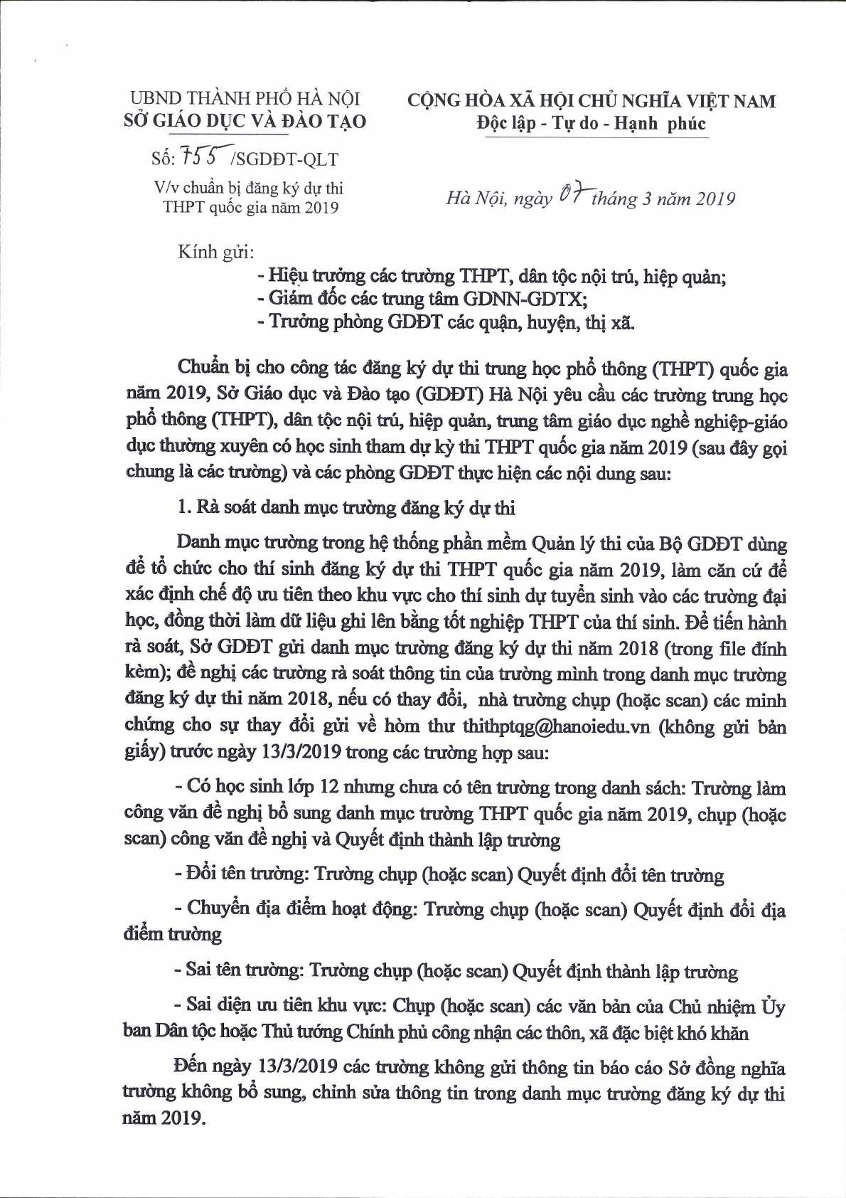 Công văn 2836/BGDĐT-NGCBQLGD