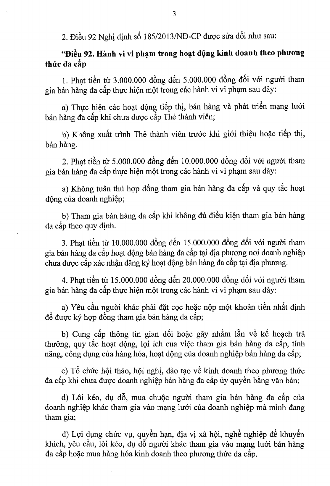 Nghị định mới cũng nâng mức phạt lên đến 5 triệu đồng thay vì 500.000 đồng như trước đây đối với người tham gia bán hàng đa cấp: