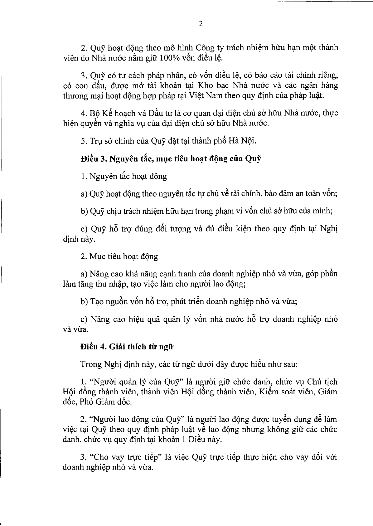 Lãi suất cho vay trực tiếp bằng 80% mức thấp nhất lãi suất cho vay thương mại. Mức cho vay đối với mỗi dự án, phương án sản xuất, kinh doanh tối đa không quá 80% tổng mức vốn đầu tư của từng dự án, phương án. Tổng mức cho vay của Quỹ đối với một doanh nghiệp nhỏ và vừa không vượt quá 15% vốn điều lệ thực có của Quỹ (vốn điều lệ tối thiểu của Quỹ theo quy định là 2.000 tỷ đồng do ngân sách Nhà nước cấp). Thời hạn vay vốn của doanh nghiệp tối đa không quá 07 năm.