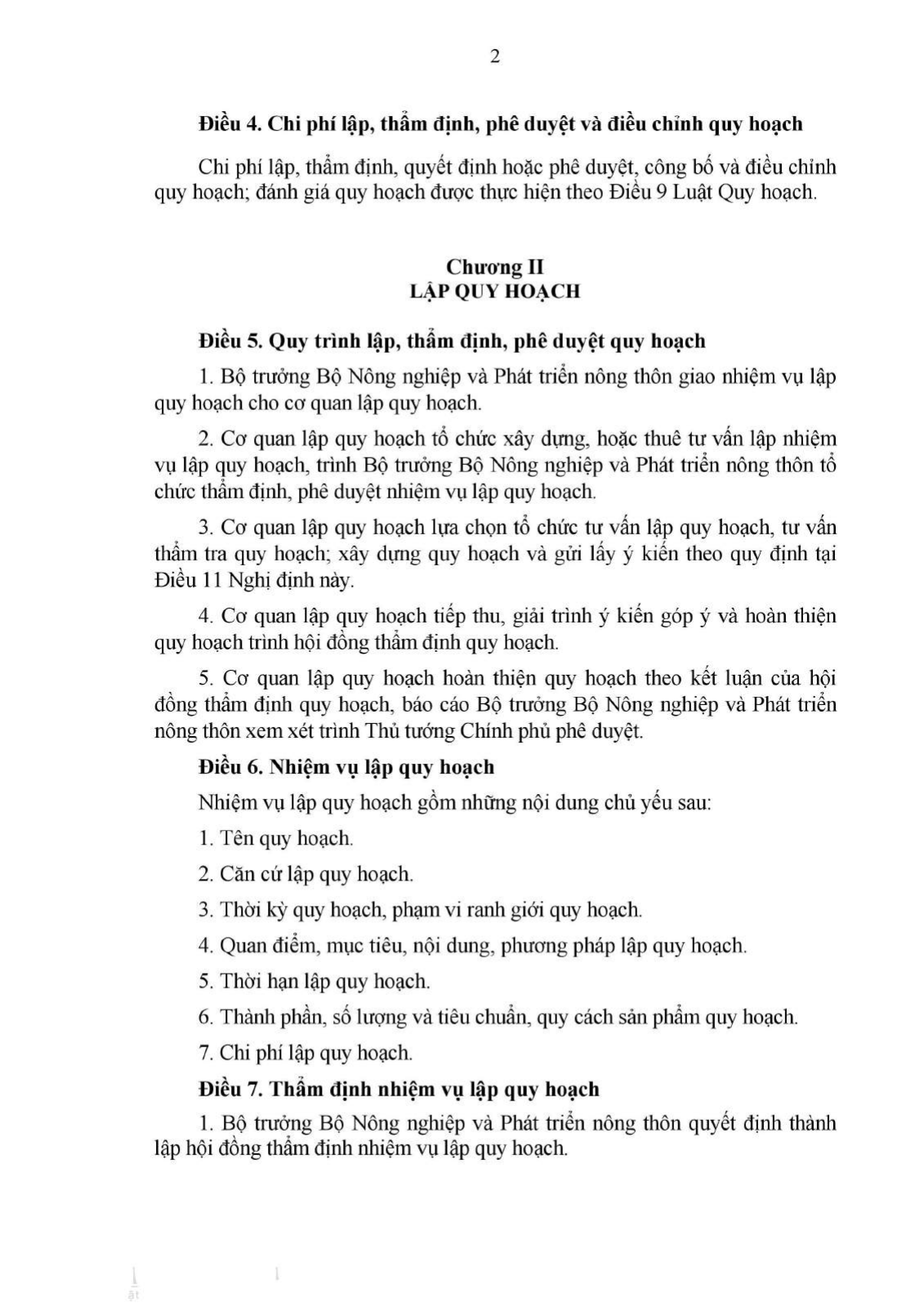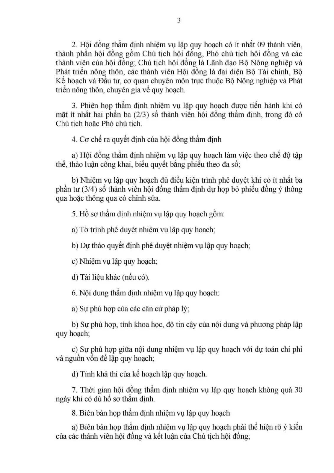 Nghị định này còn quy định Bộ trưởng Bộ Nông nghiệp và Phát triển nông thôn quyết định việc thành lập Hội đồng thẩm định quy hoạch và Tổ giúp việc Hội đồng thẩm định. Bên cạnh đó, trách nhiệm phê duyệt điều chỉnh quy hoạch thủy lợi; đê điều; phòng, chống lũ của tuyến sông có đê thuộc về Thủ tướng Chính phủ.