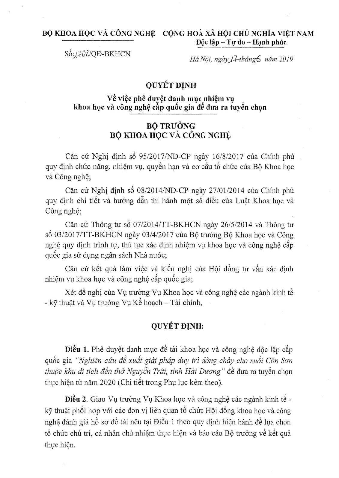 Thông tư ban hành quy chế giải thưởng Tạ Quang Bửu số 01/2015/TT-BKHCN
