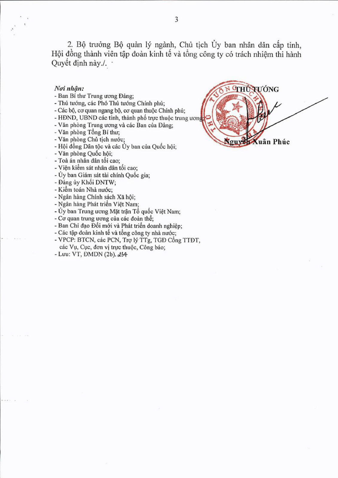 Quyết định 26/2019/QĐ-TTg của Thủ tướng Chính phủ về việc phê duyệt Danh mục doanh nghiệp thực hiện cổ phần hóa đến hết năm 2020.
