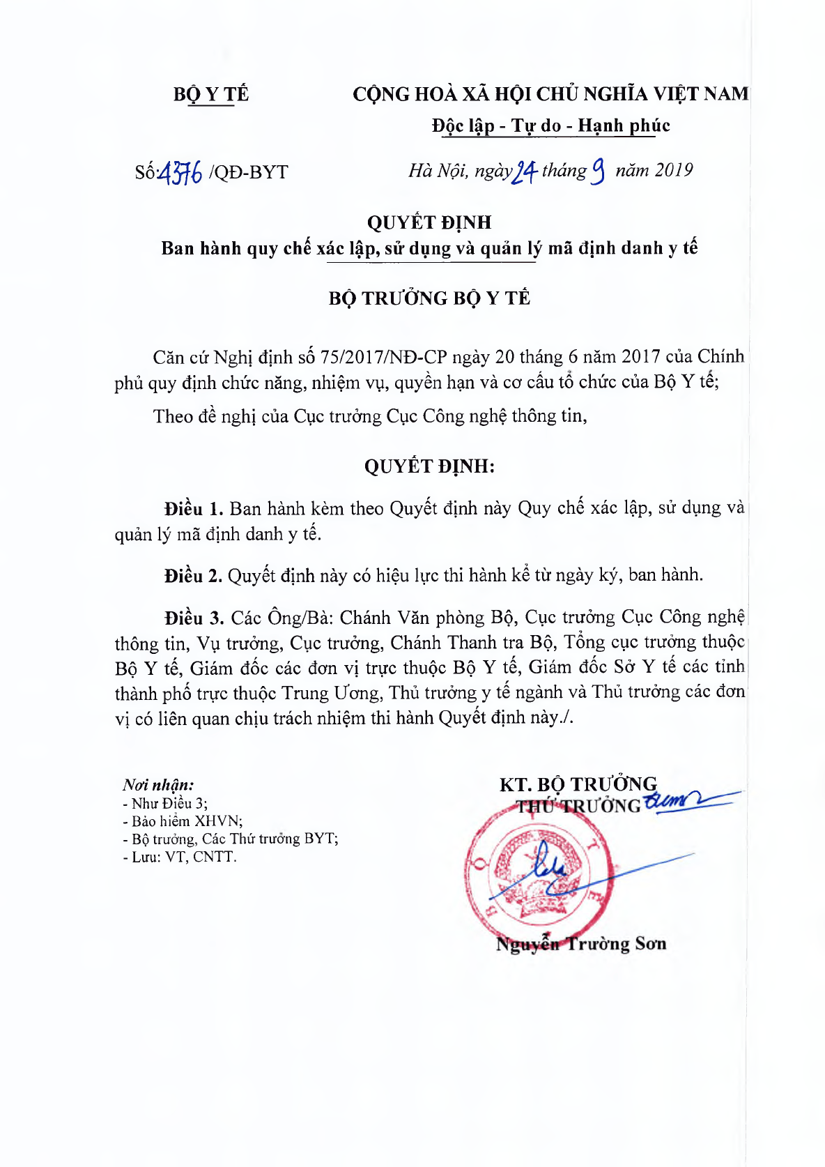 Quyết định 2598/QĐ-BYT 2019