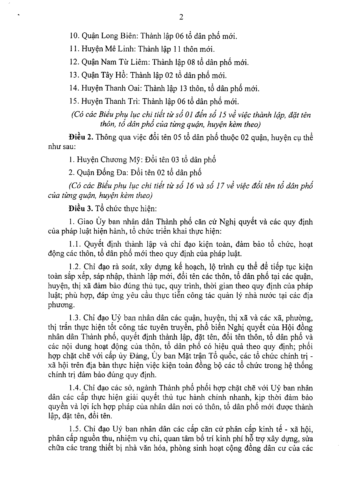 15. Huyện Thanh Trì: Thành lập 06 tổ dân phố mới.