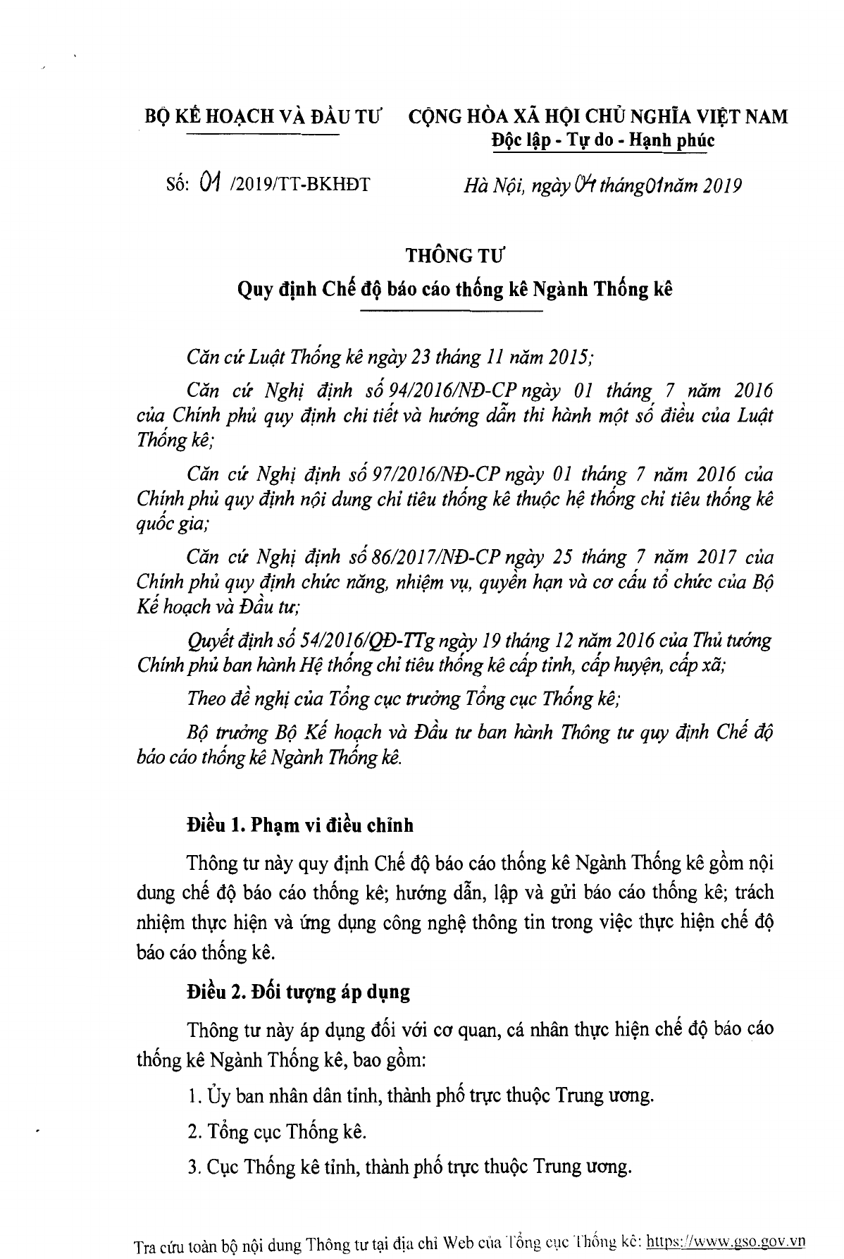 Thông tư 01/2019/TT-BKHĐT