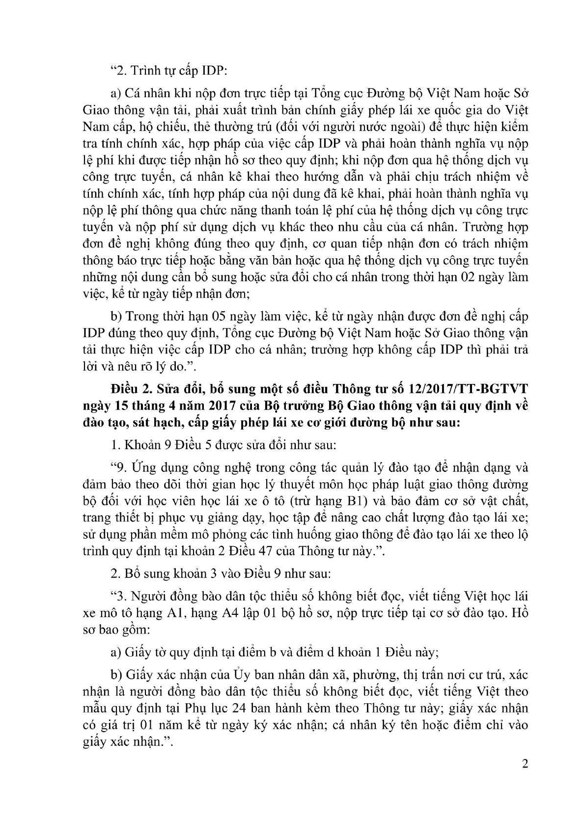 Điều 2. Sửa đổi, bổ sung một số điều Thông tư số 12/2017/TT-BGTVT ngày 15 tháng 4 năm 2017 của Bộ trưởng Bộ Giao thông vận tải quy định về đào tạo, sát hạch, cấp giấy phép lái xe cơ giới đường bộ như sau: