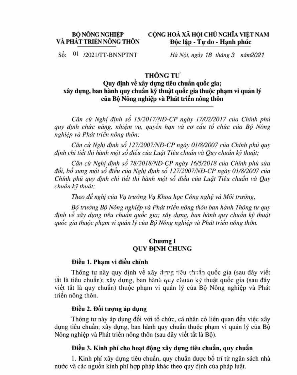 Thông tư 38/2018/TT-BNNPTNT