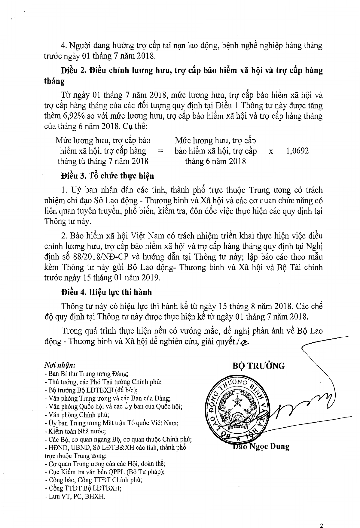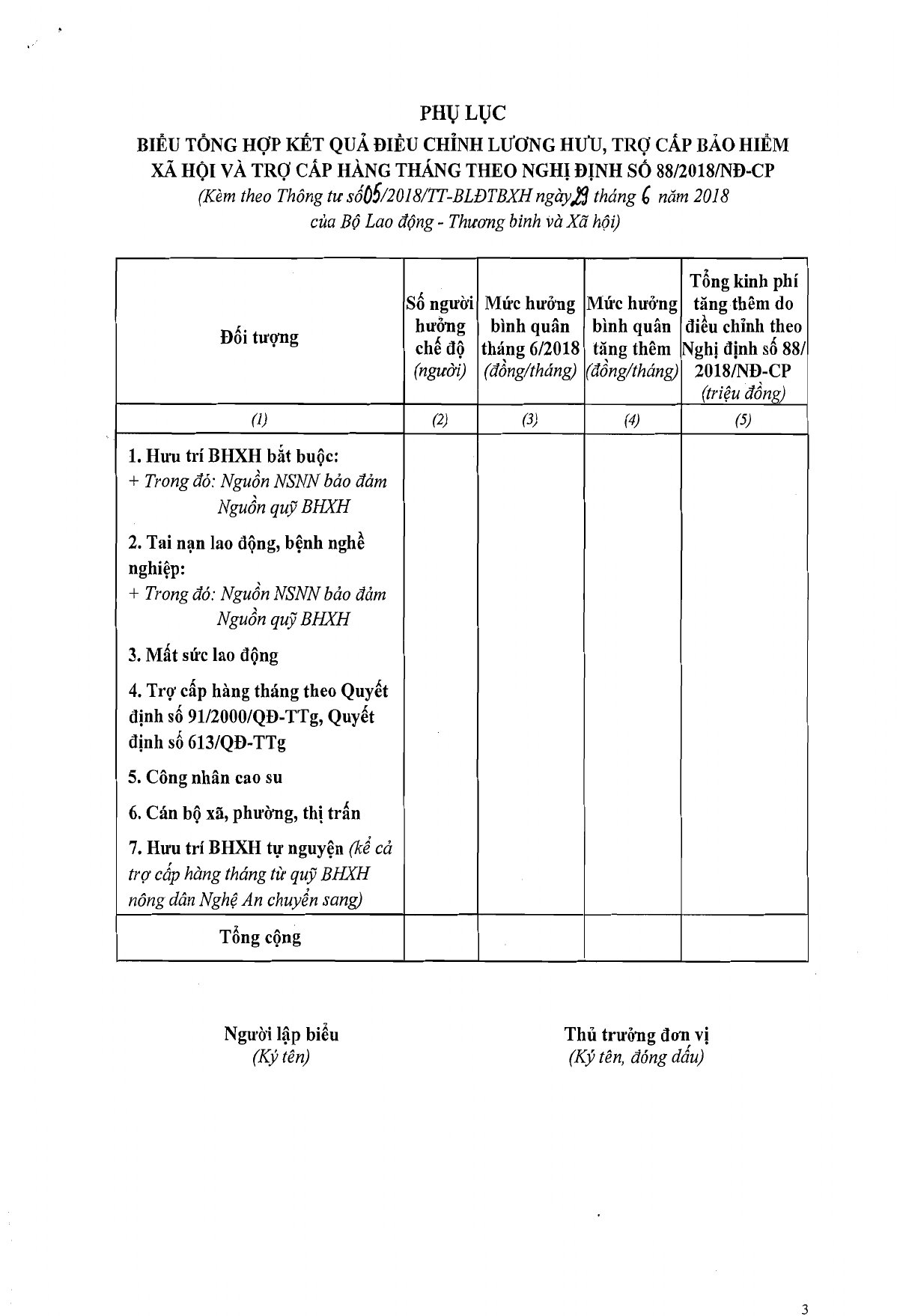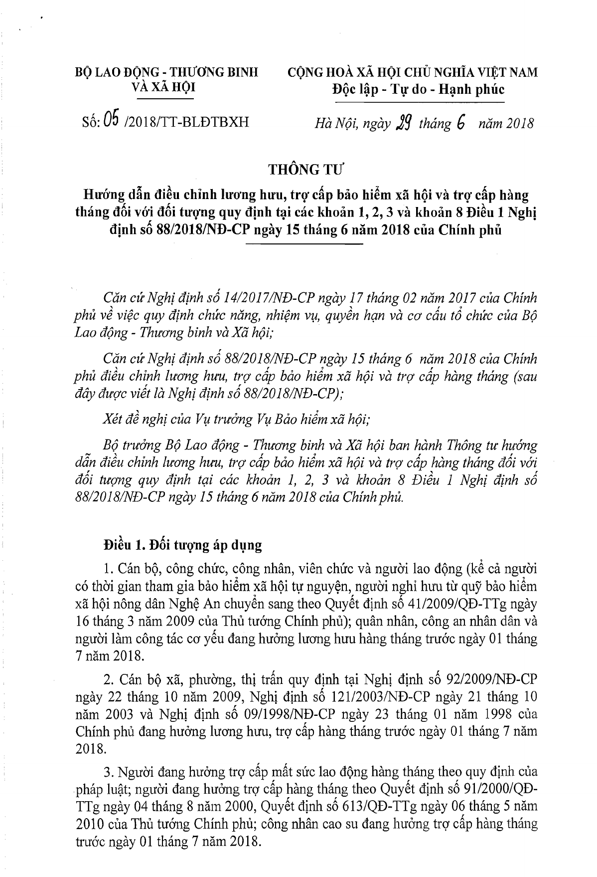 Thông tư 05/2018/TT-BLĐTBXH hướng dẫn điều chỉnh lương hưu, trợ cấp bảo hiểm xã hội và trợ cấp hàng tháng tại Nghị định 88/2018/NĐ-CP