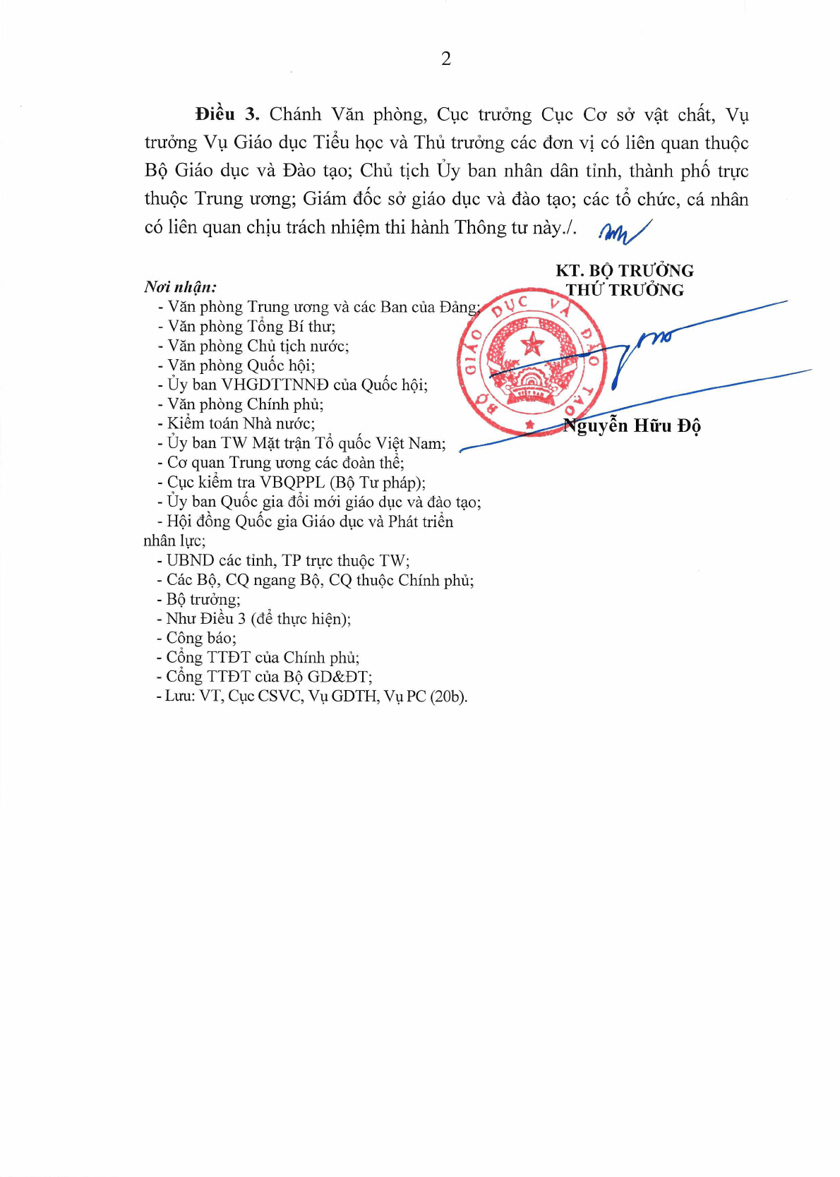 - Luu: VT, Cuc CSVC, Vu GDTH, Vu PC (20b).