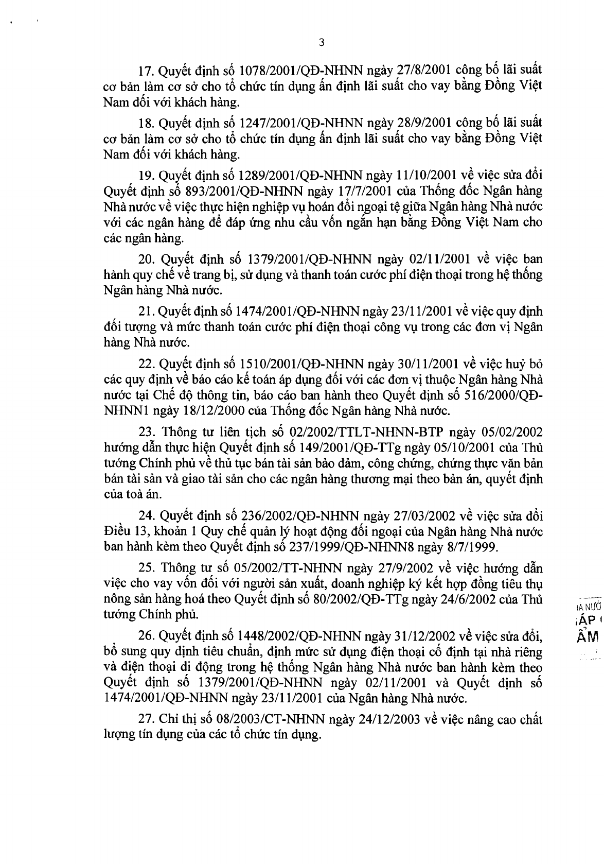Theo đó, bãi bỏ toàn bộ 36 văn bản quy phạm pháp luật do Thống đốc Ngân hàng Nhà nước Việt Nam ban hành, liên tịch ban hành, cụ thể: