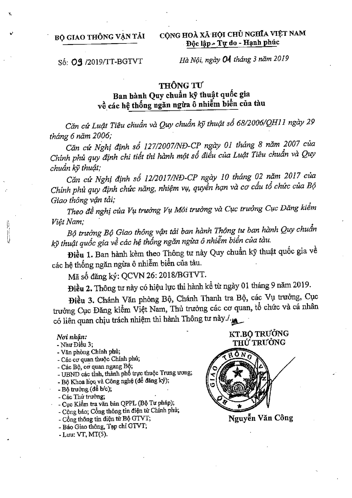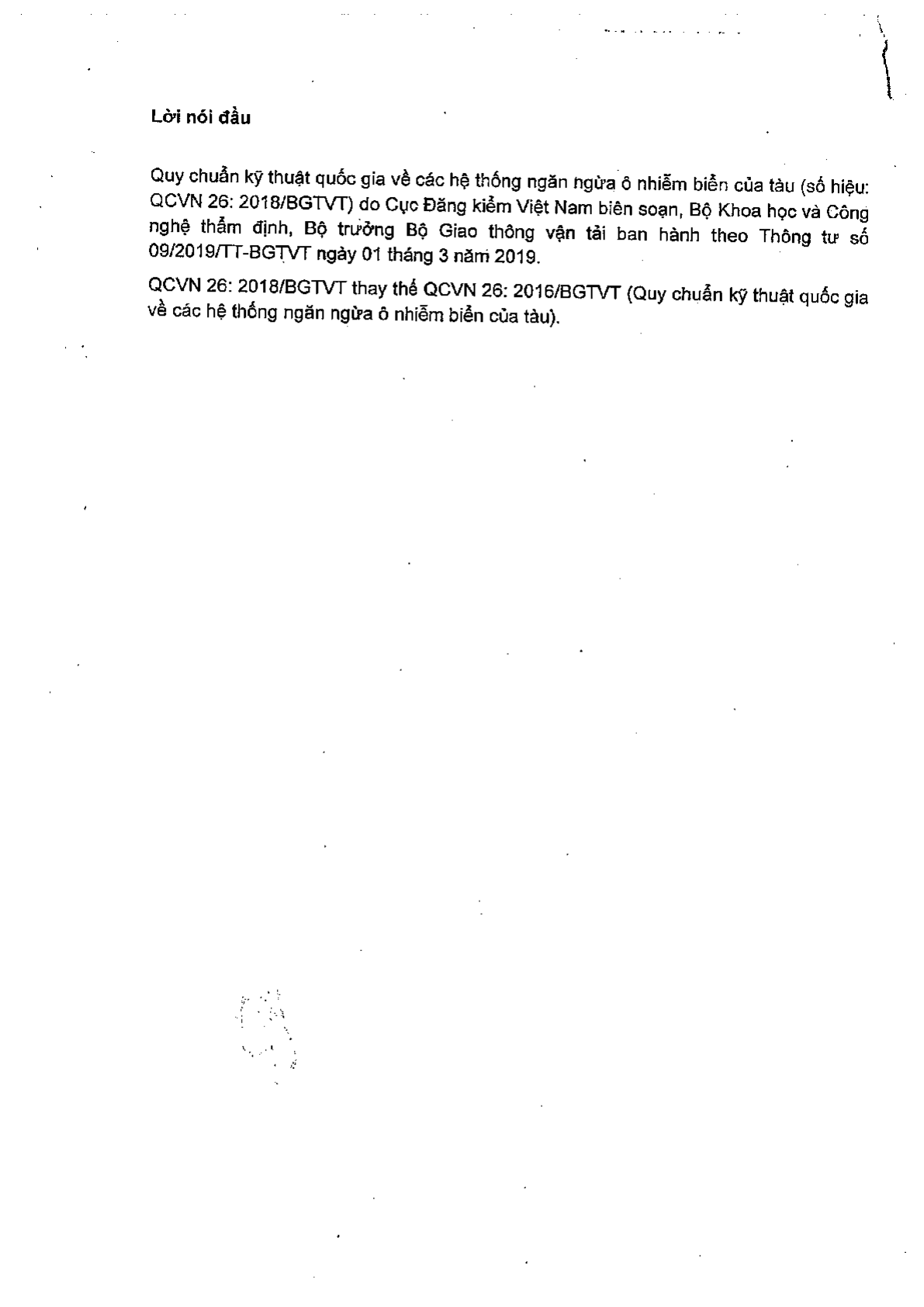 Thông tư 09/2019/TT-BGTVT của Bộ Giao thông Vận tải về việc ban hành Quy chuẩn kỹ thuật quốc gia về các hệ thống ngăn ngừa ô nhiễm biển của tàu.
