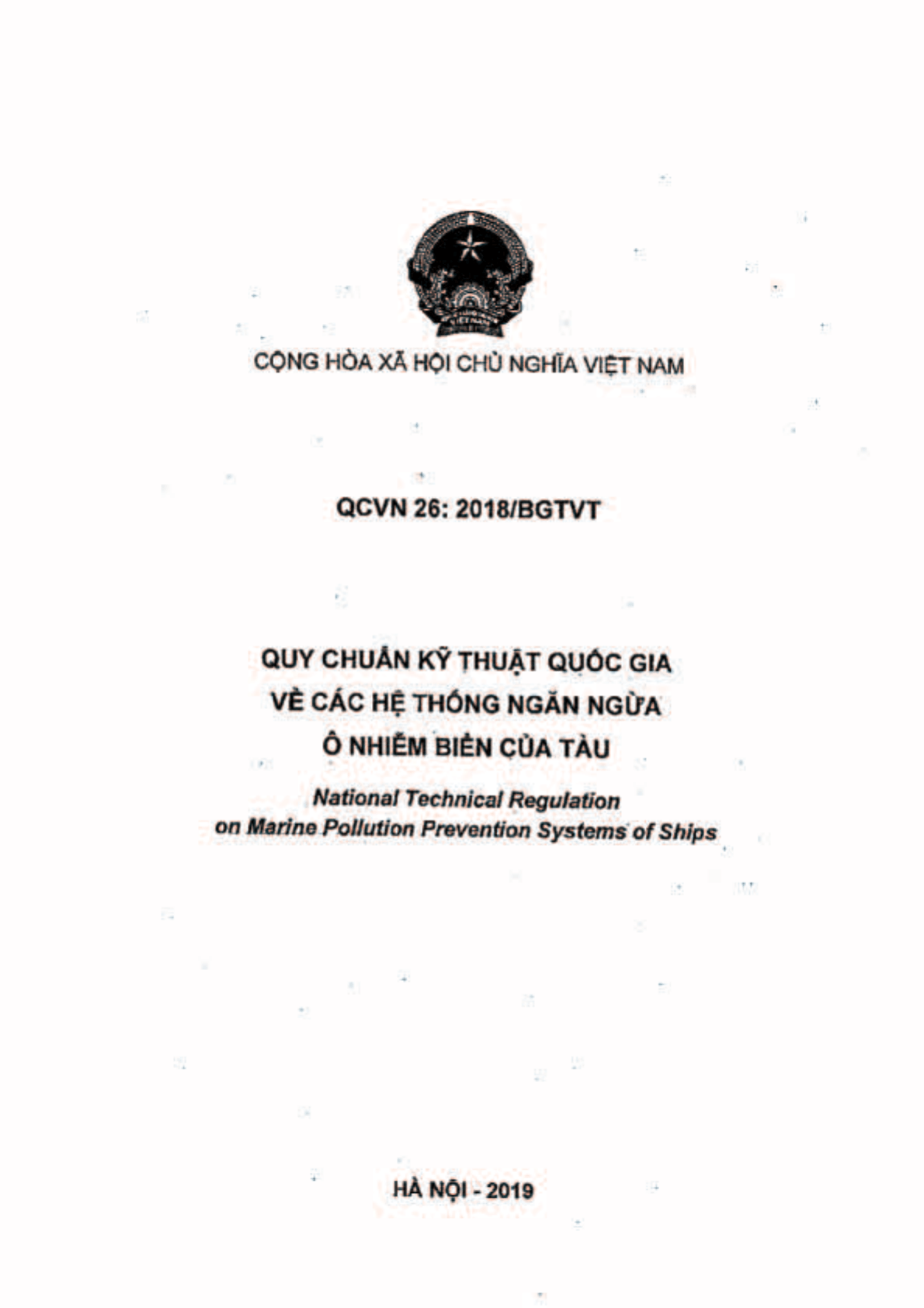 Ngày 01/03/2019, Bộ Giao thông Vận tải ra Thông tư 09/2019/TT-BGTVT ban hành Quy chuẩn kỹ thuật quốc gia về các hệ thống ngăn ngừa ô nhiễm biển của tàu.
