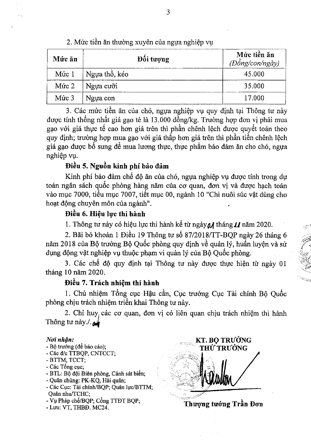 Thông tư 115/2020/TT-BQP quy định về tiêu chuẩn, định lượng ăn và mức tiền ăn của chó, ngựa nghiệp vụ thuộc phạm vi quản lý của Bộ quốc phòng.