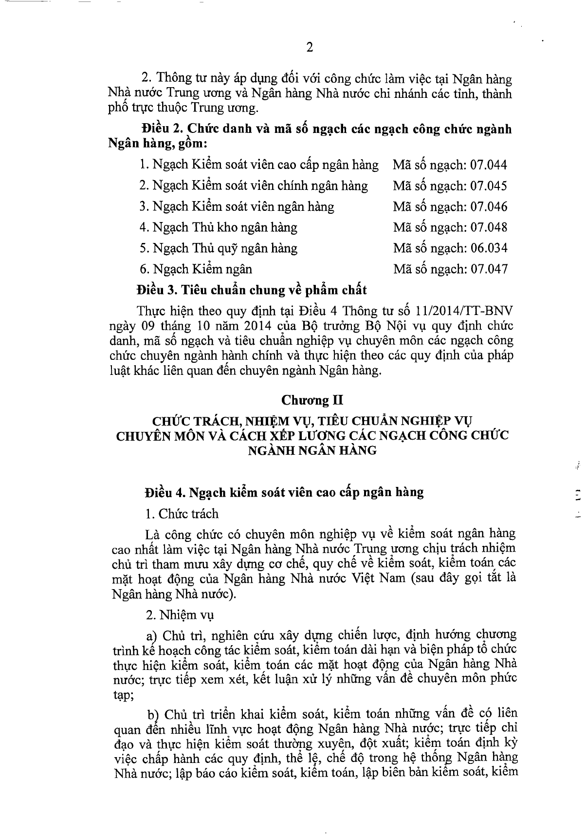 Ngày 19/8/2019, Ngân hàng nhà nước Việt Nam ban hành Thông tư 12/2019/TT-NHNN quy định chức danh, mã số ngạch, tiêu chuẩn nghiệp vụ và cách xếp lương các ngạch công chức ngành Ngân hàng.