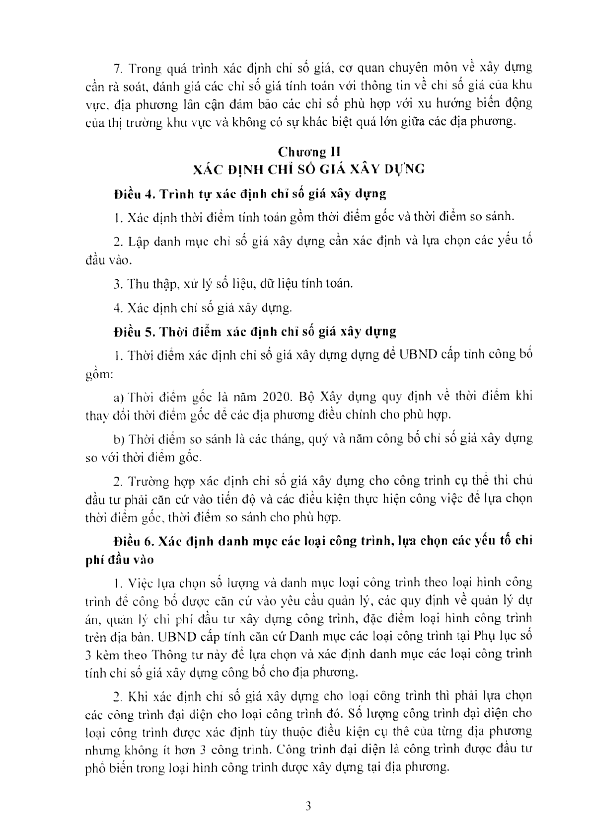 Đối với chỉ số giá xây dựng xác định cho loại công trình thì phải lựa chọn các công trình đại diện cho loại công trình đó. Số lượng công trình đại diện được xác định tùy theo điều kiện của từng địa phương nhưng tối thiểu là 03 công trình. Trường hợp xây dựng chỉ số giá cho một công trình cụ thể thì công trình đó được coi là công trình đại diện.