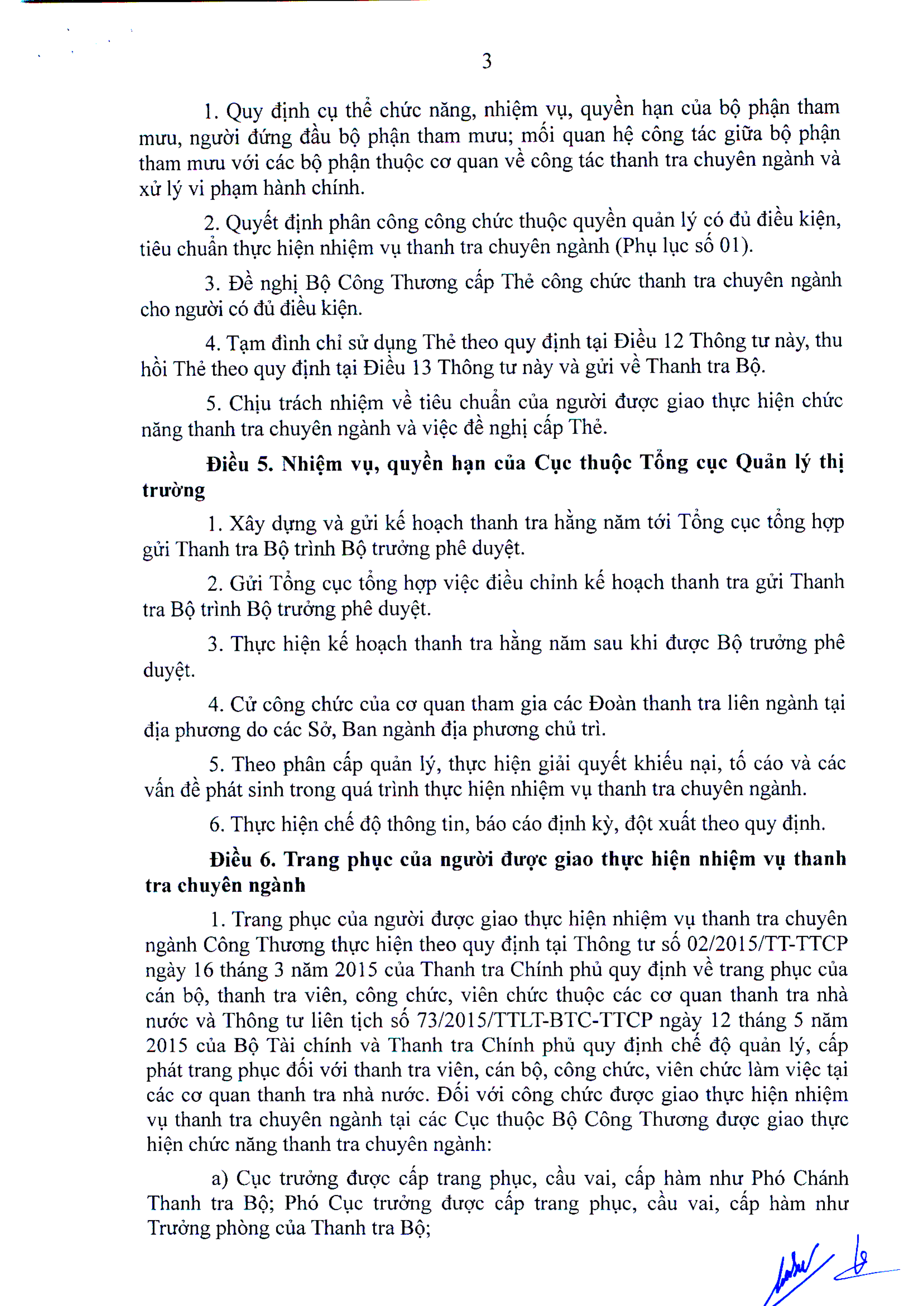 Theo đó, thủ trưởng cơ quan được giao thực hiện chức năng thanh tra chuyên ngành có nhiệm vụ cụ thể sau: Quy định chức năng, nhiệm vụ, quyền hạn của bộ phận tham mưu, người đứng đầu bộ phận tham mưu; Quyết định phân công công chức thuộc quyền quản lý có đủ điều kiện, tiêu chuẩn thực hiện nhiệm vụ thanh tra; Đề nghị Bộ Công Thương cấp Thẻ công chức thanh tra chuyên ngành cho người có đủ điều kiện;…