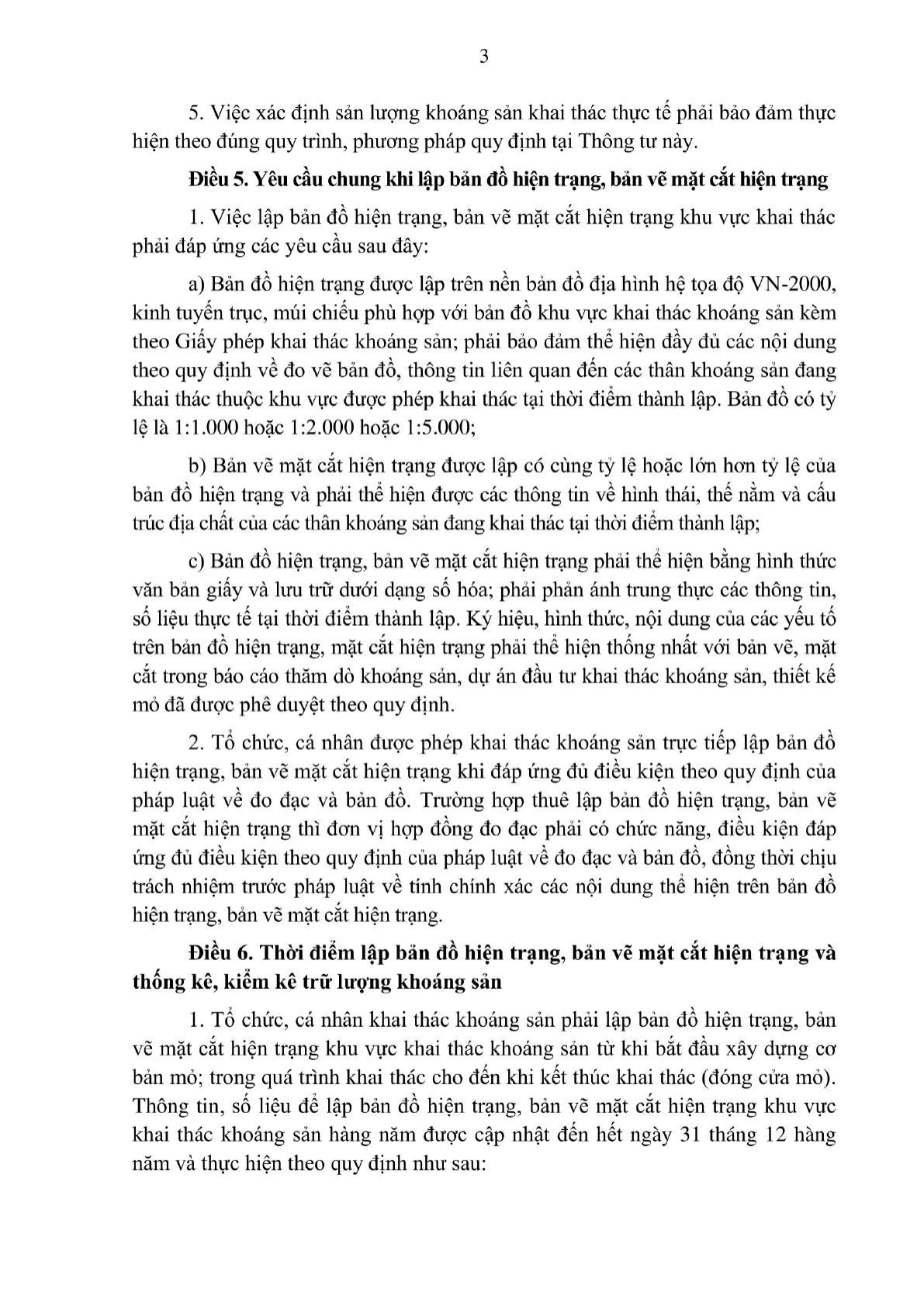 Thông tin số liệu lập bản đồ hiện trạng khu vực khoáng sản hàng năm được cập nhật đến ngày 31/12 và tối thiểu 01 năm/lần với khai thác nước khoáng, nước nóng thiên nhiên, khai thác khoáng sản làm vật liệu xây dựng thông thường với công suất nhỏ hơn 50.000 m3 khoáng sản nguyên khai/năm. Với các loại khoáng sản còn lại tối thiểu 6 tháng/lần.