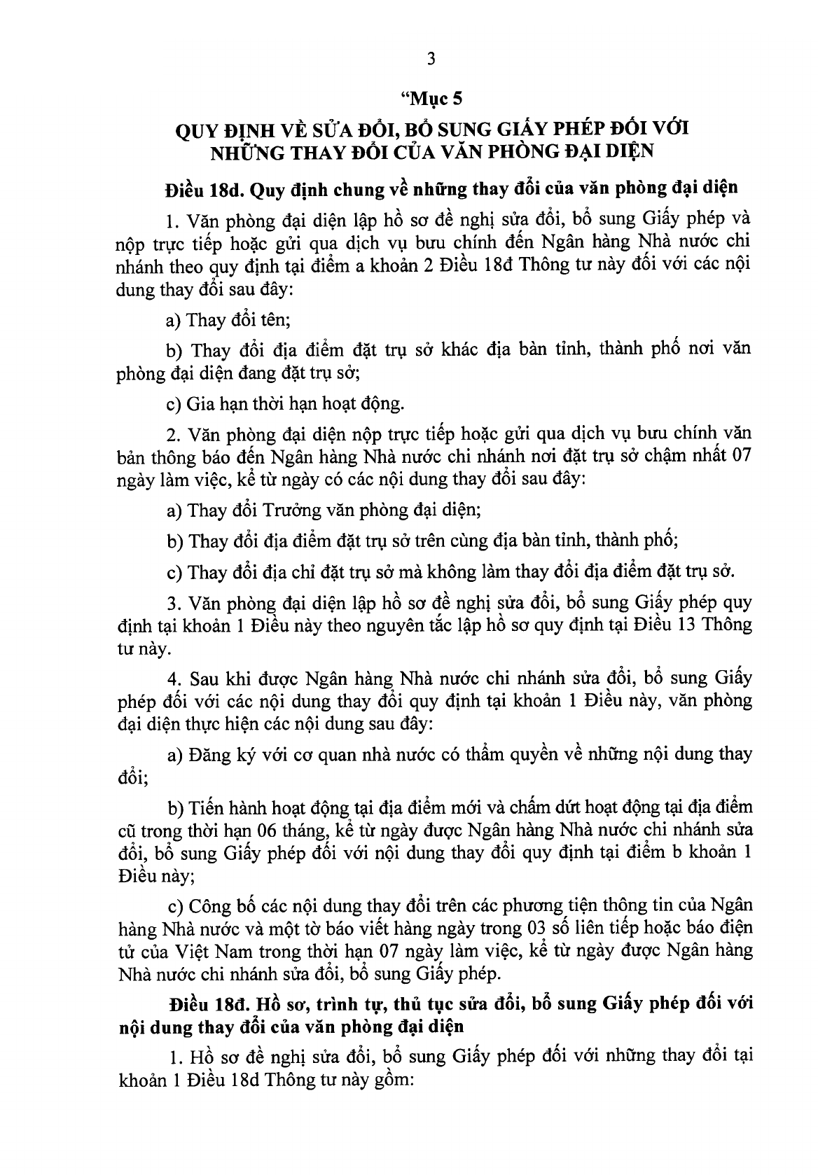 03 trường hợp sửa đổi, bổ sung Giấy phép văn phòng đại diện TCTD