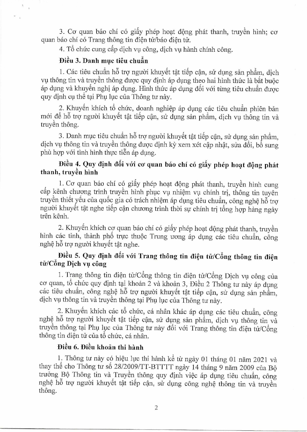 Ngày 23/9/2020, Bộ Thông tin và Truyền thông đã ban hành Thông tư 26/2020/TT-BTTTT quy định việc áp dụng tiêu chuẩn, công nghệ hỗ trợ người khuyết tật tiếp cận, sử dụng sản phẩm, dịch vụ thông tin và truyền thông.