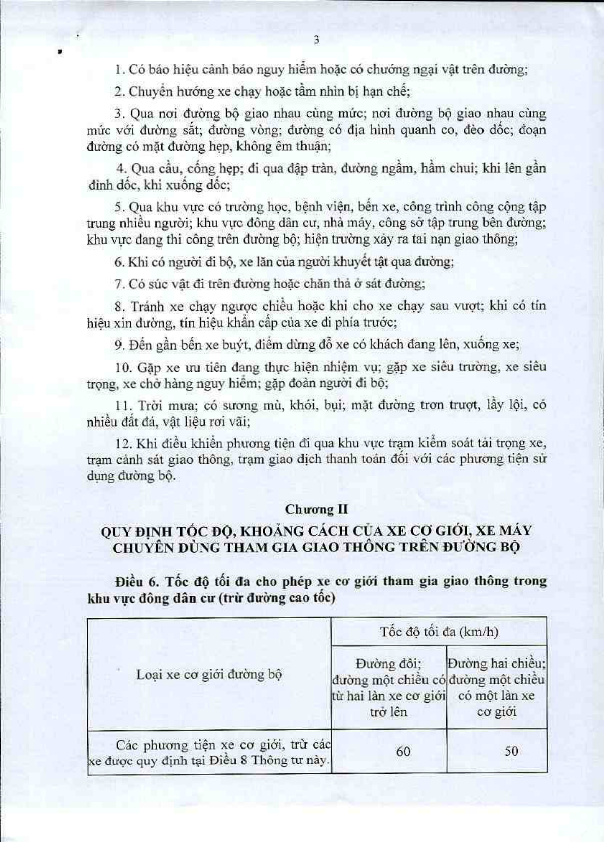 Ngoài ra, Thông tư cũng quy định cụ thể về khoảng cách an toàn giữa hai xe khi tham gia giao thông trên đường khi mặt đường khô ráo: Tốc độ lưu hành 60km/h, khoảng cách tối thiểu giữa hai xe là 35m; Tốc độ lưu hành từ trên 60km/h đến 80km/h, khoảng cách tối thiểu giữa hai xe là 55m; Tốc độ lưu hành từ trên 80 km/h đến 100km/h, khoảng cách tối thiểu giữa hai xe là 70m; Tốc độ lưu hành từ trên 100km/h đến 120km/h, khoảng cách tối thiểu giữa hai xe là 100m. Đối với trường hợp xe đi với tốc độ dưới 60km/h, người lái xe phải điều chỉnh khoảng cách phù hợp để bảo đảm an toàn.