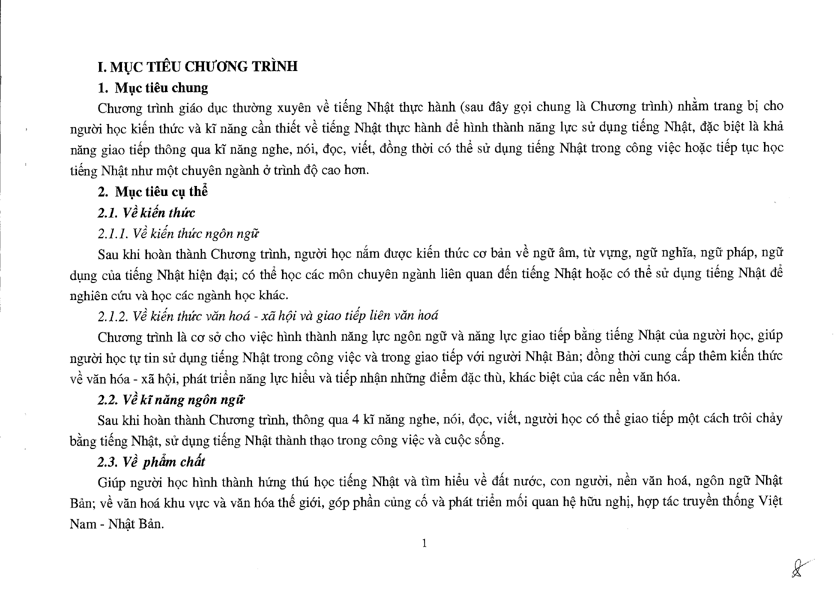 Quy dinh Chuang trinh giao duc thiron xuyen ve tieng Nh4t thirc hanh