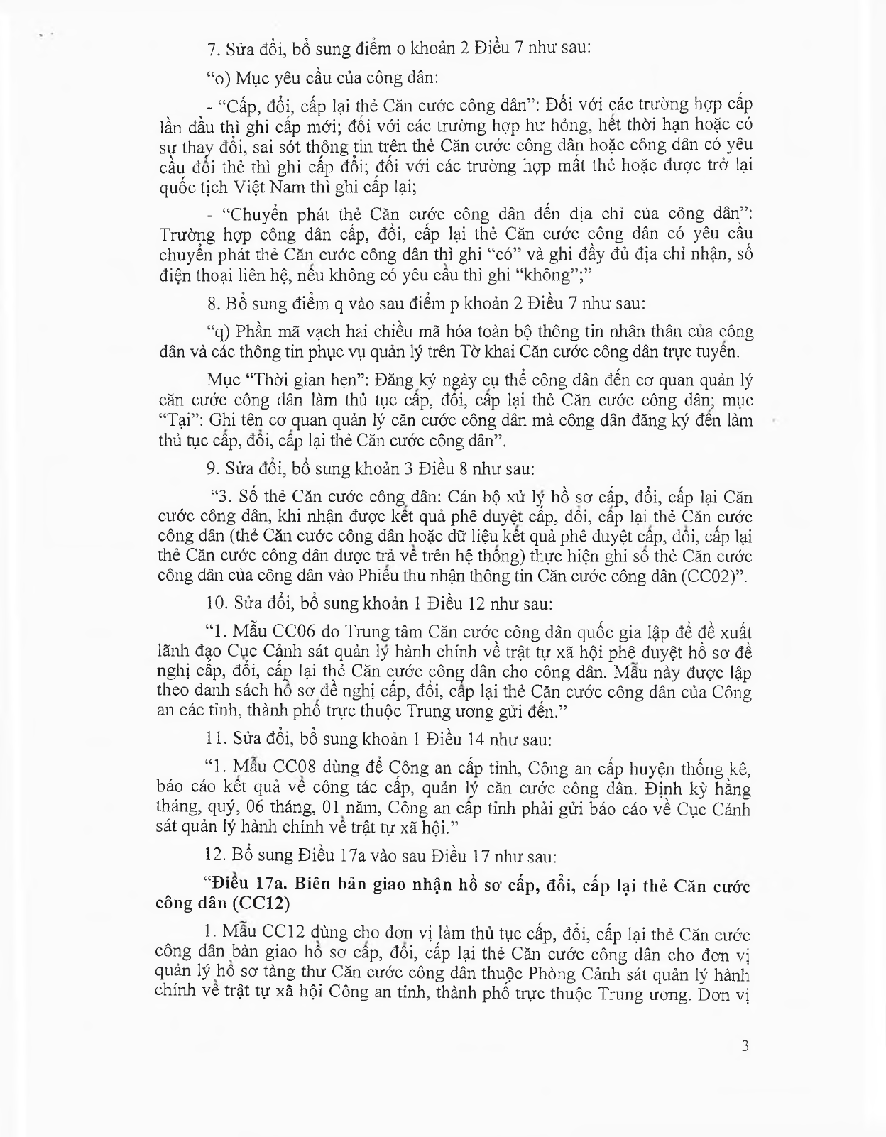 Ngày 1/10/2019 Bộ công an ban hành Thông tư 41/2019/TT-BCA. Cụ thể bổ sung 02 biểu mẫu được sử dụng trong cấp, quản lý thẻ Căn cước công dân, tàng thư căn cước công dân (ký hiệu là CC), bao gồm: Biên bản giao nhận hồ sơ cấp, cấp đổi, cấp lại thẻ Căn cước công dân (mẫu CC12), Giấy đề nghị xác nhận số Chứng minh nhân dân (mẫu CC13).