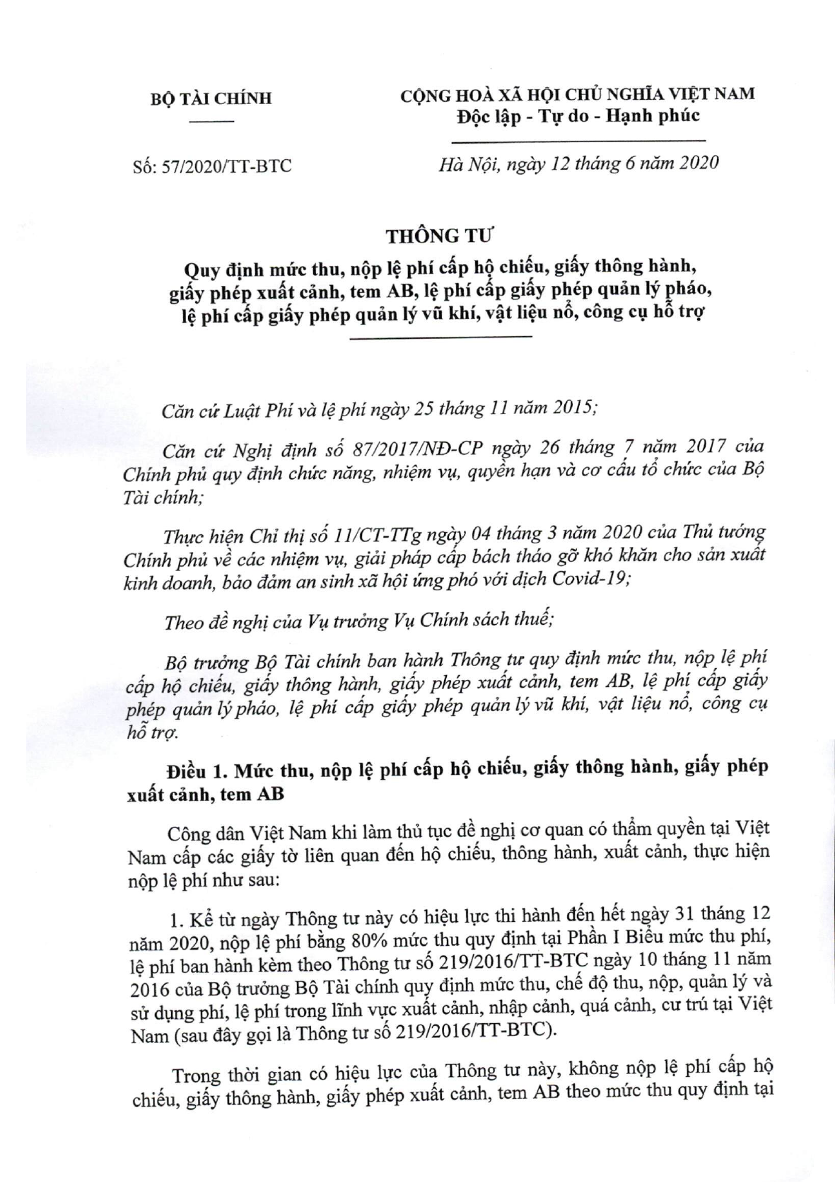 Thông tư 219/2016/TT-BTC về thu, nộp và sử dụng phí, lệ phí trong lĩnh vực xuất, nhập, quá cảnh, cư trú tại Việt Nam