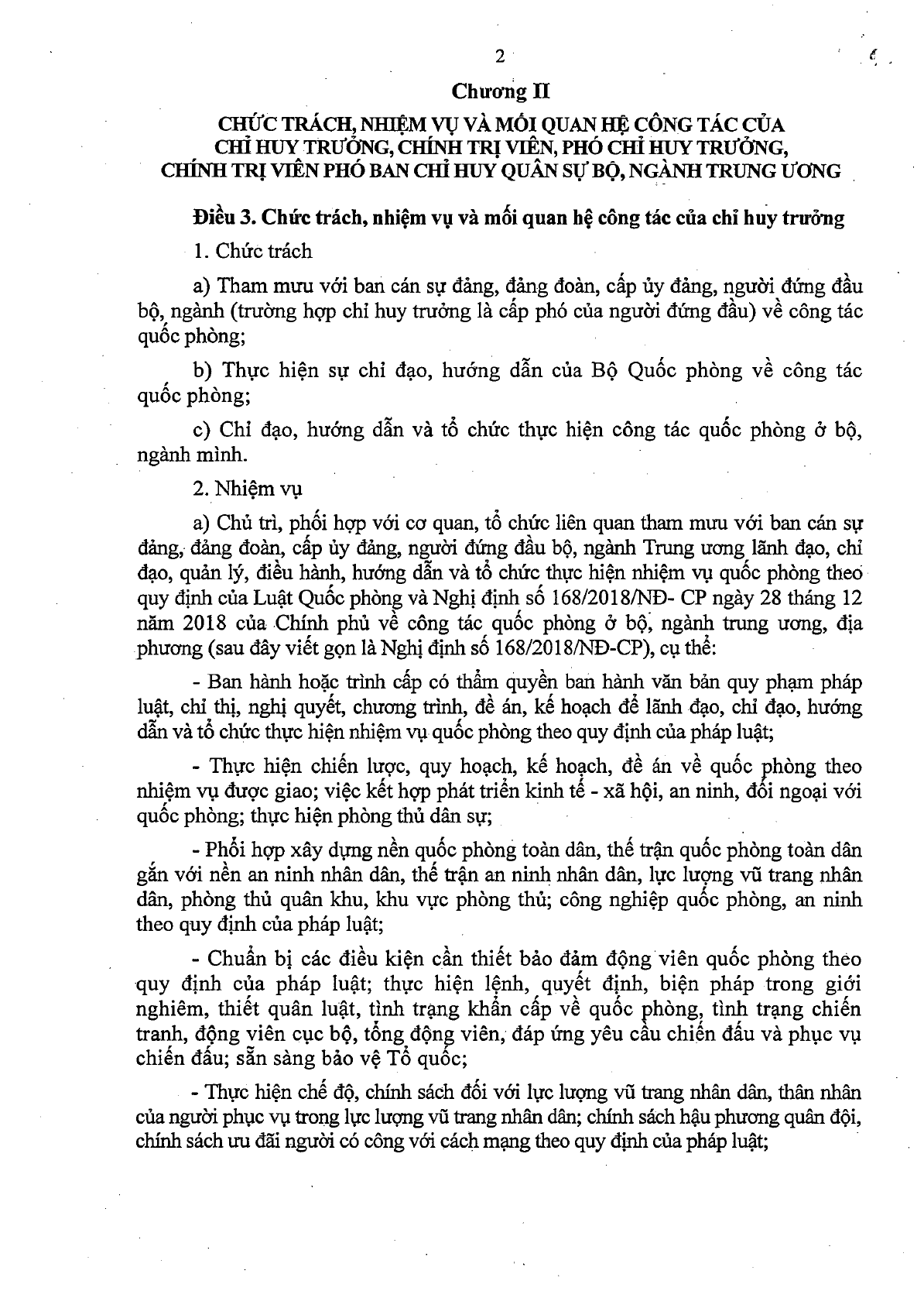 quy định của Luật Quốc phòngNghị định số 168/2018/NĐ- CP ny 28 tháng 12